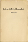 The Second Annual Announcement of the College of Medical Evangelists, (Chartered 1909) Loma Linda, California, 1910-1911. The First Announcement for the College of Medical Evangelists was published in the Fourth Quarter,1909 issue of the Medical Evangelist. This is the second announcement for what would become the School of Medicine, but the fifth bulletin for the College. The College of Medical Evangelists would later become Loma Linda University.